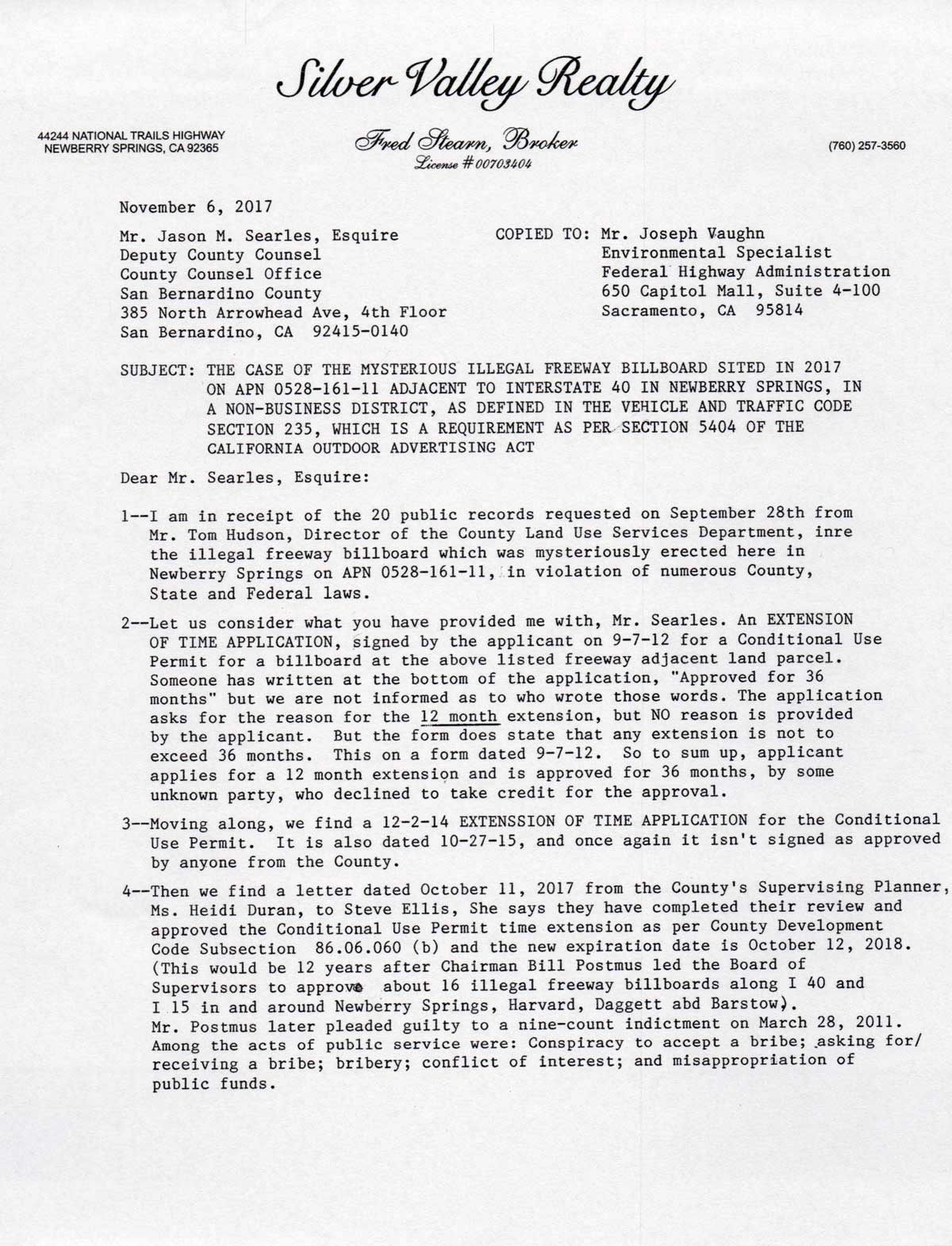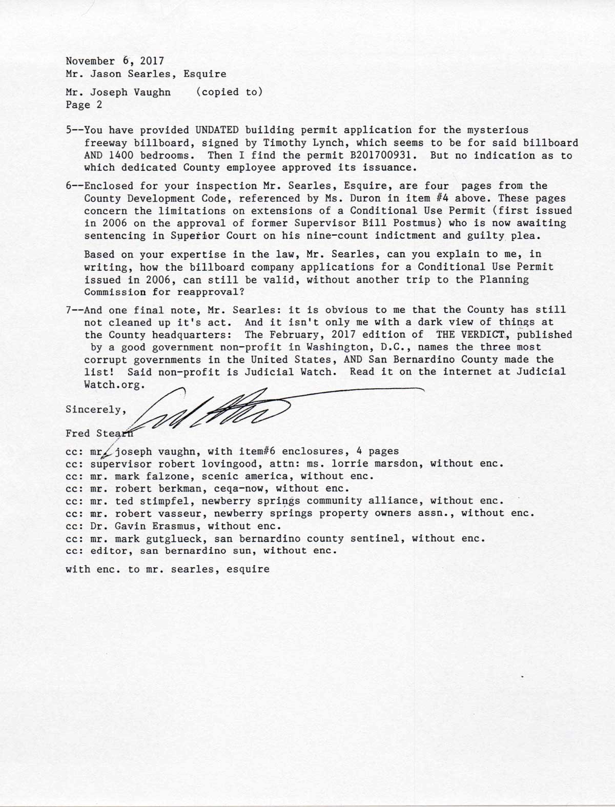 the county's corrupt permitting process for the new billboard with a letter to the