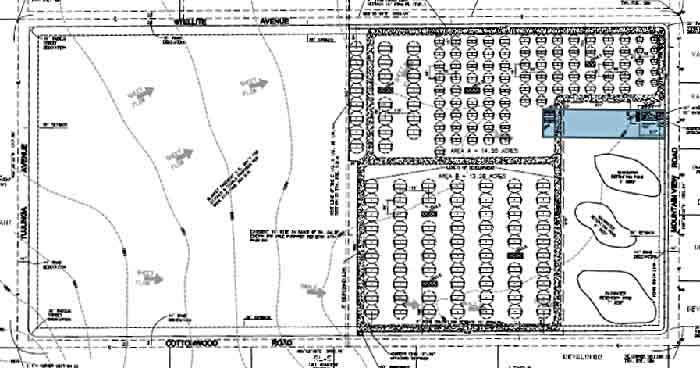 Diagram of array layout on 27 acres. This represents the first phase of a possible two.